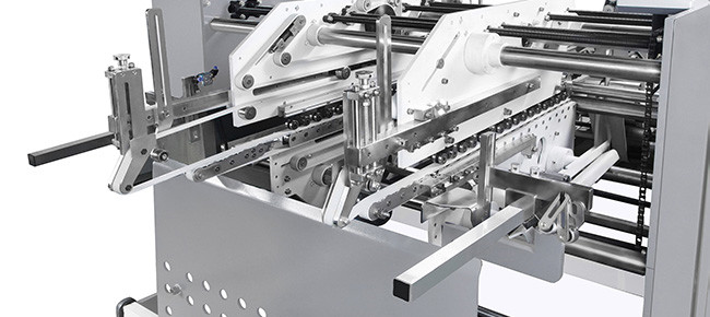 TECHNOFOLD-1450 Ideal for working with medium and large boxes in the heavy packaging industry. Its design includes driven upper carriers, making easy the precise folding and closing micro-flute and corrugated boxes in its advance.